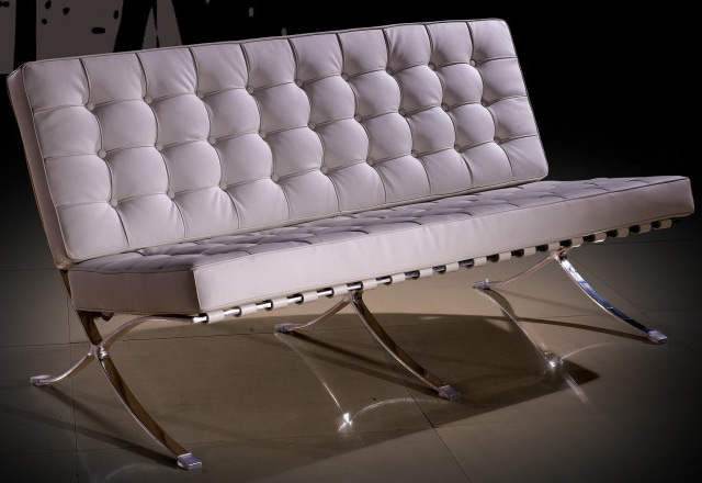 Великолепный кожаный диван для офиса обитый итальянской кожей на стальной хромированной раме от немецкого дизайнера Людвига Мис ван дер Рое. 3-х Местный кожаный диван Барселона - комфорт и изящество, офисе. Размеры дивана Барселона: 182х78х80 см. Офисный кожаный диван Барселона в белом цвете (немецкий дизайнер Людвиг Мис ван дер Рое.)