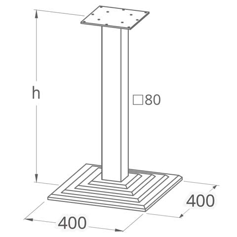 Материал : чугун Высота опоры 720 мм Верхнее крепление 290х290 мм Нижнего основания 400х400 мм Цвет опоры: чорная структура Толщина металла 1,5 мм Вес - 17 кг Ножки регулируемые - 4 шт.