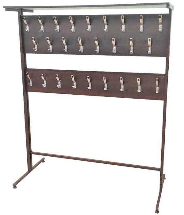 Вешалка для одежды - стойка арт. 315 DГардеробная стойка-вешалка для одежды для дома, офиса, кафе, ресторана. Стойка напольная имеет металлический каркас из трубы 25х25 мм. и окрашена черной порошковой краской. Цвет каркаса - порошковая краска по каталогу RAL. ДСП может быть любого цвета. Крючок стандарт DW 08 хром, сатин, никель или другие крючки. Размер: 1500х700х1800 мм. или другой размер по Вашим пожеланиям. |
