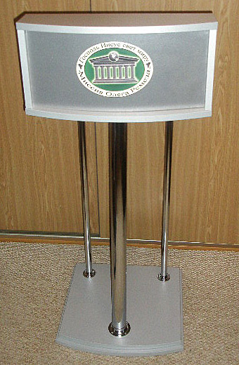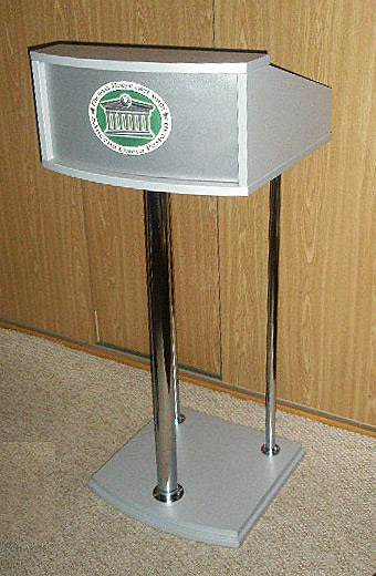 Трибуна, кафедра № 23Трибуна , стойка, кафедра № 23 титан/ хром.Оригинальное решение легкая устойчивая трибуна подойдет в любую аудиторию, сочетание цветов, хром и титан делает её очень удачной. Легко переносится а также перевезти не составляет никакого труда. Также любую трибуну можно сделать мобильной. Если Вы хотите установить что нибудь дополнительно мы пойдем Вам навстречу, эти вопросы уточняйте с менеджером. Мебель для конференц-залов: трибуны для выступлений, стойки для доклада, лекционные кафедры для съездов, симпозиумов, лекций, конференций, торжеств и концертов. Подобрать стол для президиума >> СМОТРЕТЬ ... Информация для заказчика: Выбрать кресла для конференций , стулья для персонала .